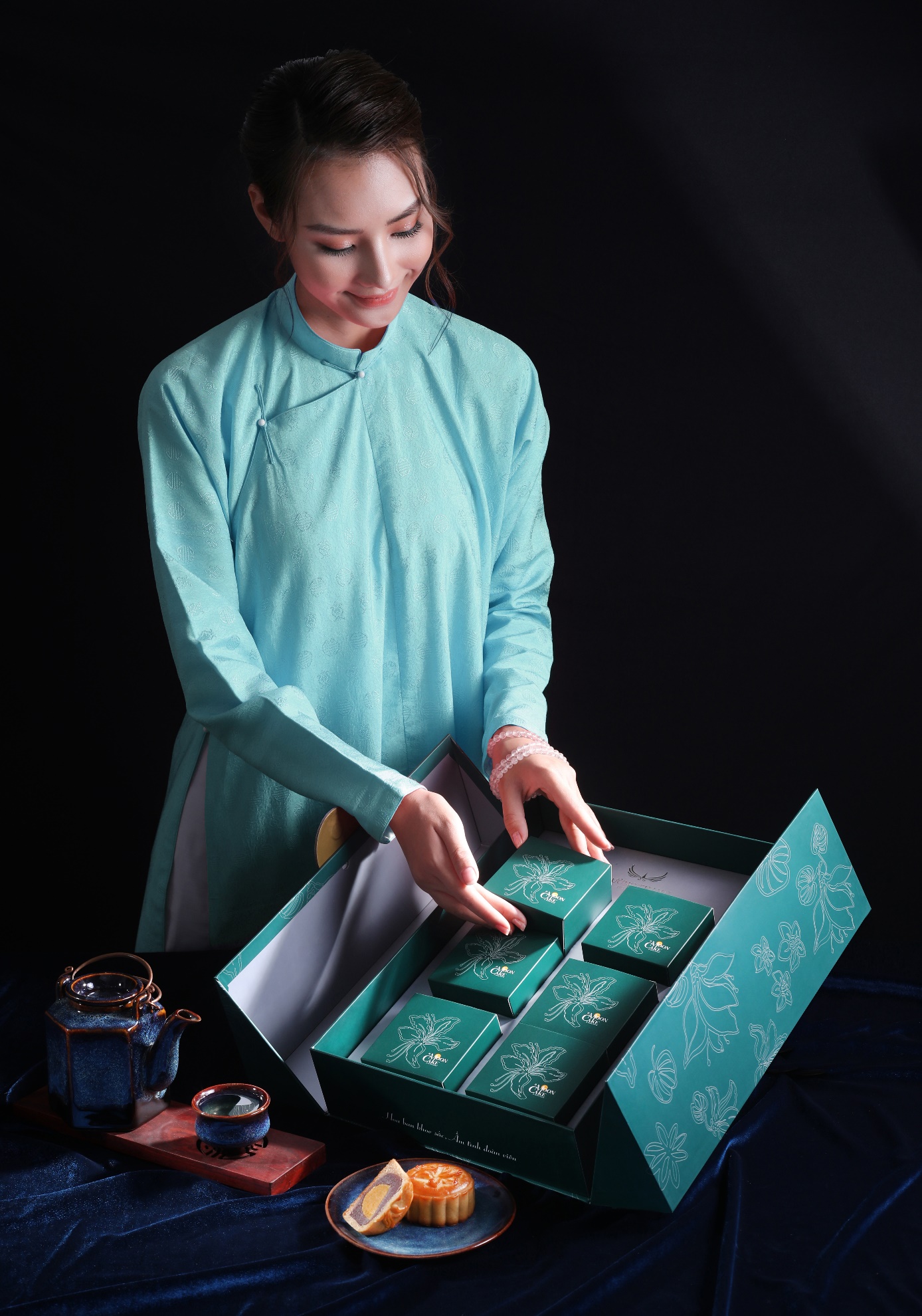 Hộp bánh trung thu “Hoa Ban khoe sắc - Ấm tình đoàn viên” của Mường Thanh có 6 bánh nhỏ bên trong được bài trí hiện đại, tiện lợi.