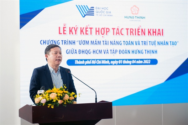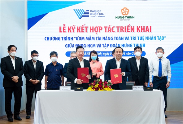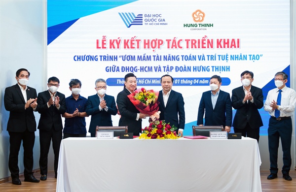 Lễ ký kết hợp tác triển khai chương trình “Ươm mầm tài năng Toán và Trí tuệ nhân tạo” giữa Đại học Quốc gia TP.HCM và Tập đoàn Hưng Thịnh được tổ chức vào chiều ngày 1.4