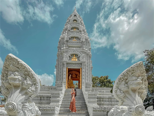 Ngỡ ngàng trước vẻ đẹp tráng lệ bảo tháp chùa Som Rong Sóc Trăng. Ảnh: Bùi Chiu