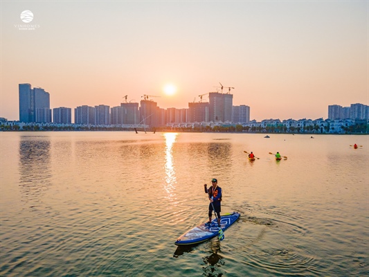 Lựa chọn chèo thuyền sub để hít thở không khí trong mát buổi sáng sớm, Hồng Anh (cư dân Vinhomes Ocean Park) cho biết: đây giống nhu thói quen cô vẫn làm vào cuối tuần để rèn luyện cơ thể cũng như hưởng thụ không khí sạch sẽ, không khói bụi.