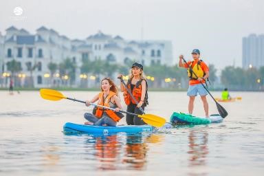 Lựa chọn chèo thuyền sub để hít thở không khí trong mát buổi sáng sớm, Hồng Anh (cư dân Vinhomes Ocean Park) cho biết: đây giống nhu thói quen cô vẫn làm vào cuối tuần để rèn luyện cơ thể cũng như hưởng thụ không khí sạch sẽ, không khói bụi.
