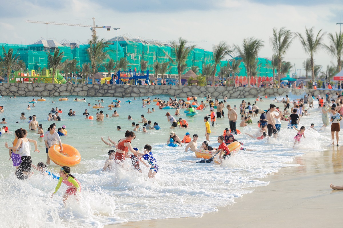 Không phải ngày nghỉ, Tổ hợp biển tạo sóng lớn nhất thế giới vẫn đông nghịt khách dịp 1.6