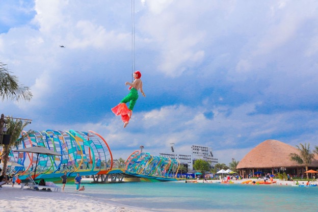 Tâm điểm của các hoạt động vào buổi chiều là sự xuất hiện của siêu cần cẩu khổng lồ cùng hai diễn viên xiếc trình diễn các kỹ thuật đu lượn trên không mạo hiểm, tạo sự choáng ngợp, bất ngờ cho toàn bộ du khách.