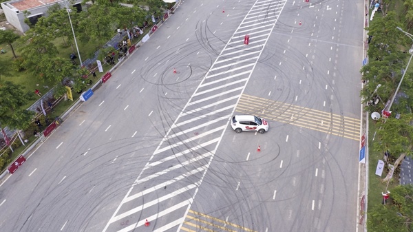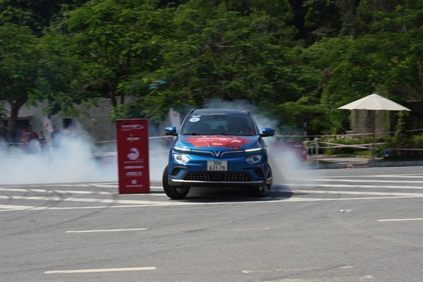 Một trong những khung hình đáng nhớ khi các tay đua dùng VF e34 để “vẽ” nên những vòng tròn đặc biệt. Rất nhiều tay đua cho rằng, với thế mạnh sẵn có của xe điện nói chung và VF e34 nói riêng, những chiếc ô tô điện hoàn toàn đáp ứng được yêu cầu của dân đua Gymkhana chuyên nghiệp. “Chúng ta hoàn toàn có thể tổ chức riêng một giải đua ô tô điện”, tay đua Phạm Hoàng Đức nói.