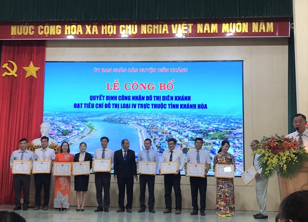 VHO - Cuối tháng 4.2021, UBND huyện Diên Khánh (tỉnh Khánh Hòa) đã công bố quyết định của Bộ Xây dựng về việc“Công nhận đô thị Diên Khánh đạt tiêu chí đô thị loại IV trực thuộc tỉnh Khánh Hòa”. Dịp này, Điện lực Diên Khánh - Khánh Vĩnh (PC Khánh Hòa) đã được UBND huyện tặng Giấy khen vì đã có thành tích xuất sắc trong công tác xây dựng và phát triển đô thị Diên Khánh.