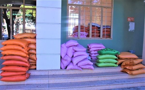 Tập kết gạo, sẵn sàng cấp phát cho người dân