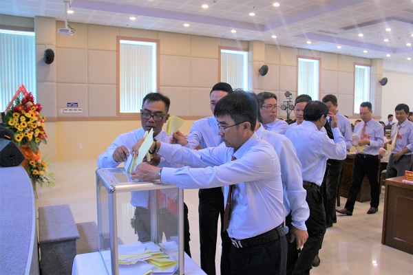 Các đại biểu bỏ phiếu bầu BCH Đảng bộ nhiệm kỳ 2020 - 2025