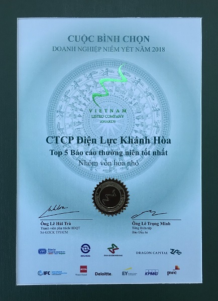 Vượt qua hoàng loạt doanh nghiệp, PC Khánh Hòa được bình chọn và xếp thứ 2 trong nhóm doanh nghiệp vốn hóa nhỏ có báo cáo thường niên tốt nhất năm 2018.