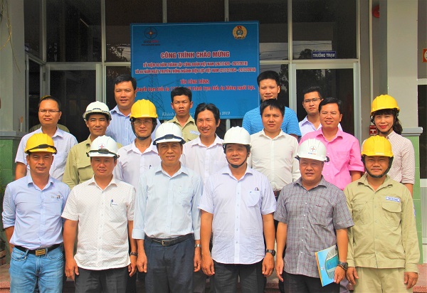 Lãnh đạo và CBCNV PC Khánh Hòa tại lễ gắn biển công trình Trạm biến áp không người trực