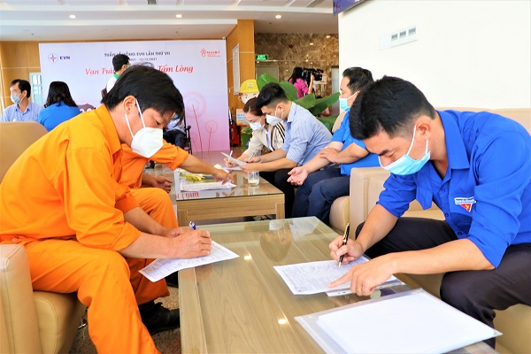 Cán bộ, công nhân viên, người lao động Công ty CP Điện lực Khánh Hòa đăng ký chia sẻ những giọt máu hồng