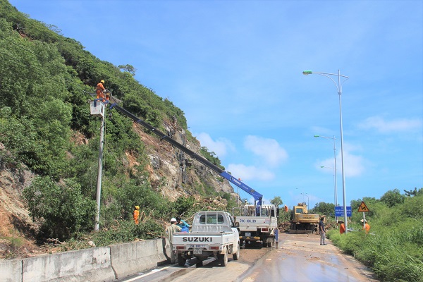 Theo đó, sau bão số 8, đã có 37/78 xuất tuyến điện thuộc Công ty Cổ phần Diện lực Khánh Hòa bị sự cố, cô lập do không đảm bảo vận hành. Cụ thể, tại địa phận huyện Cam Lâm, nước lũ đã gây sạt lở, hư hỏng khoảng 500m đường dây, gãy 3 trụ trung áp gây sự cố mất điện trên đèo Cù Hin, đơn vị trực chiến tại điện lực đã nhanh chóng huy động nhân lực, phương tiện để kịp thời sửa chữa khu vực bị hư hỏng, hoàn thành đóng điện, khôi phục cấp điện trở lại vào 21h ngày 18-11.