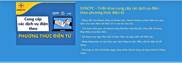 Theo đó, khách hàng sẽ ký các hồ sơ điện tử theo phương thức mật khẩu một lần (OTP) nhận tin nhắn qua email/số điện thoại. Phương thức giao dịch này mang lại cho khách hàng nhiều tiện ích, nhanh chóng, thực hiện các giao dịch mua bán điện với điện lực ở mọi lúc mọi nơi. Bên cạnh đó, phương thức đảm bảo tính bảo mật cao, chỉ có khách hàng mới được quyền truy cập và sử dụng hợp đồng điện tử.