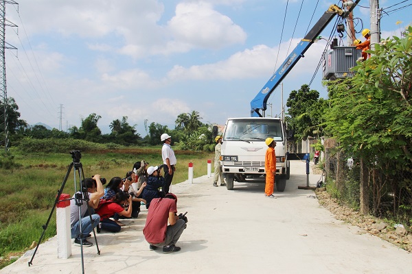 Các cơ quan truyền thông tác nghiệp về tình hình khắc phục sự cố lưới điện