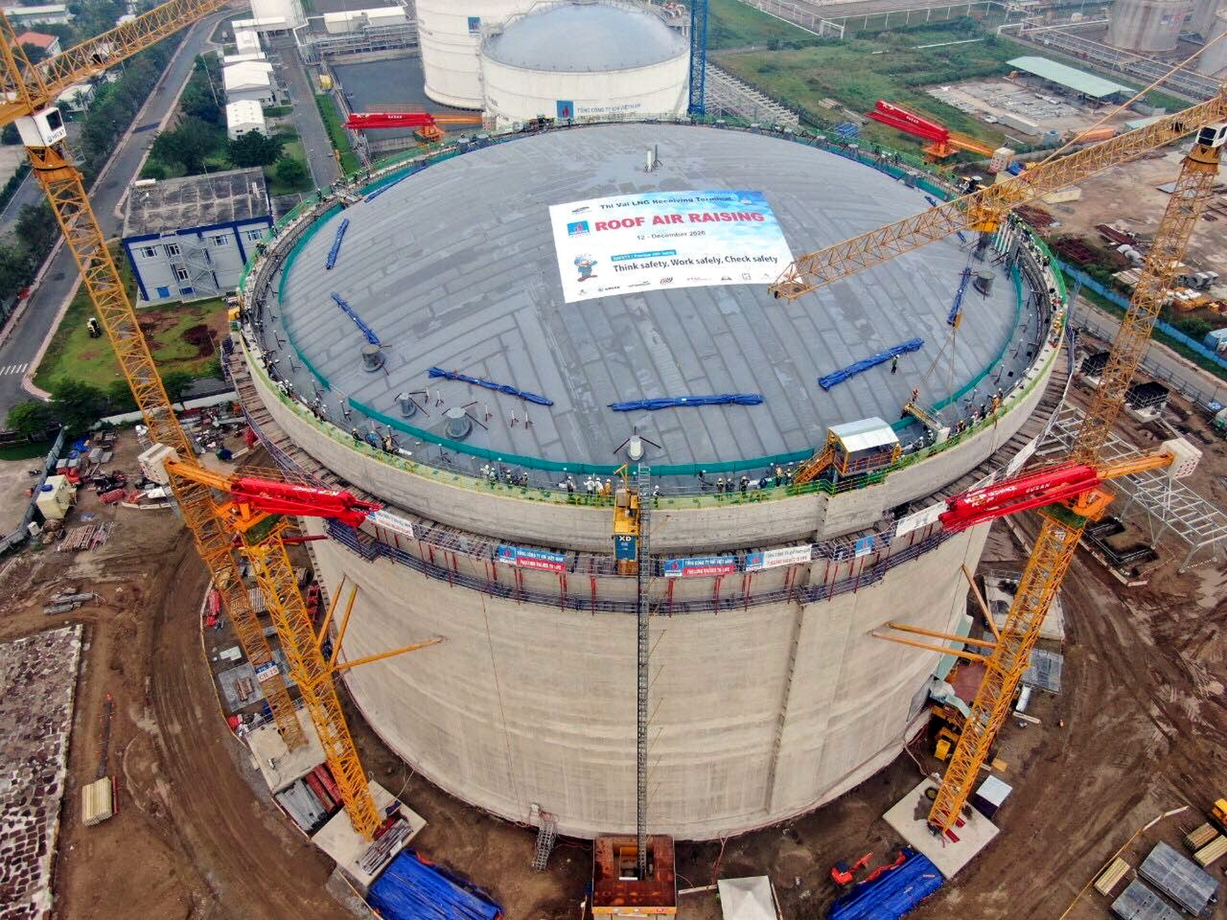 PV GAS hoàn thiện thi công và nâng mái bồn chứa của kho LNG Thị Vải