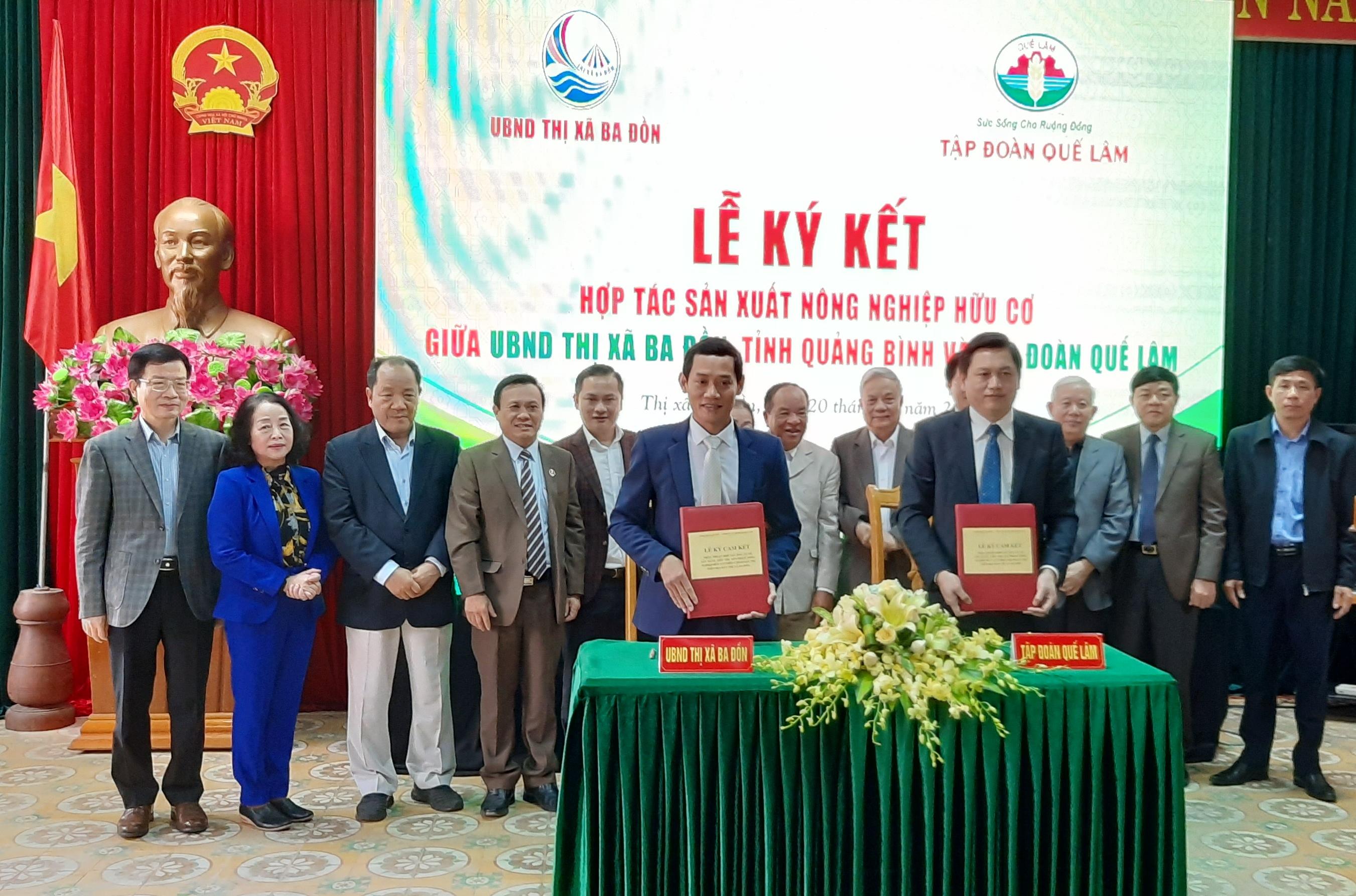 VHO - Ngày 20.2, UBND thị xã Ba Đồn (tỉnh Quảng Bình) và Tập đoàn Quế Lâm đã tổ chức lễ ký kết hợp tác sản xuất nông nghiệp hữu cơ theo chuỗi giá trị trên địa bàn thị xã.
