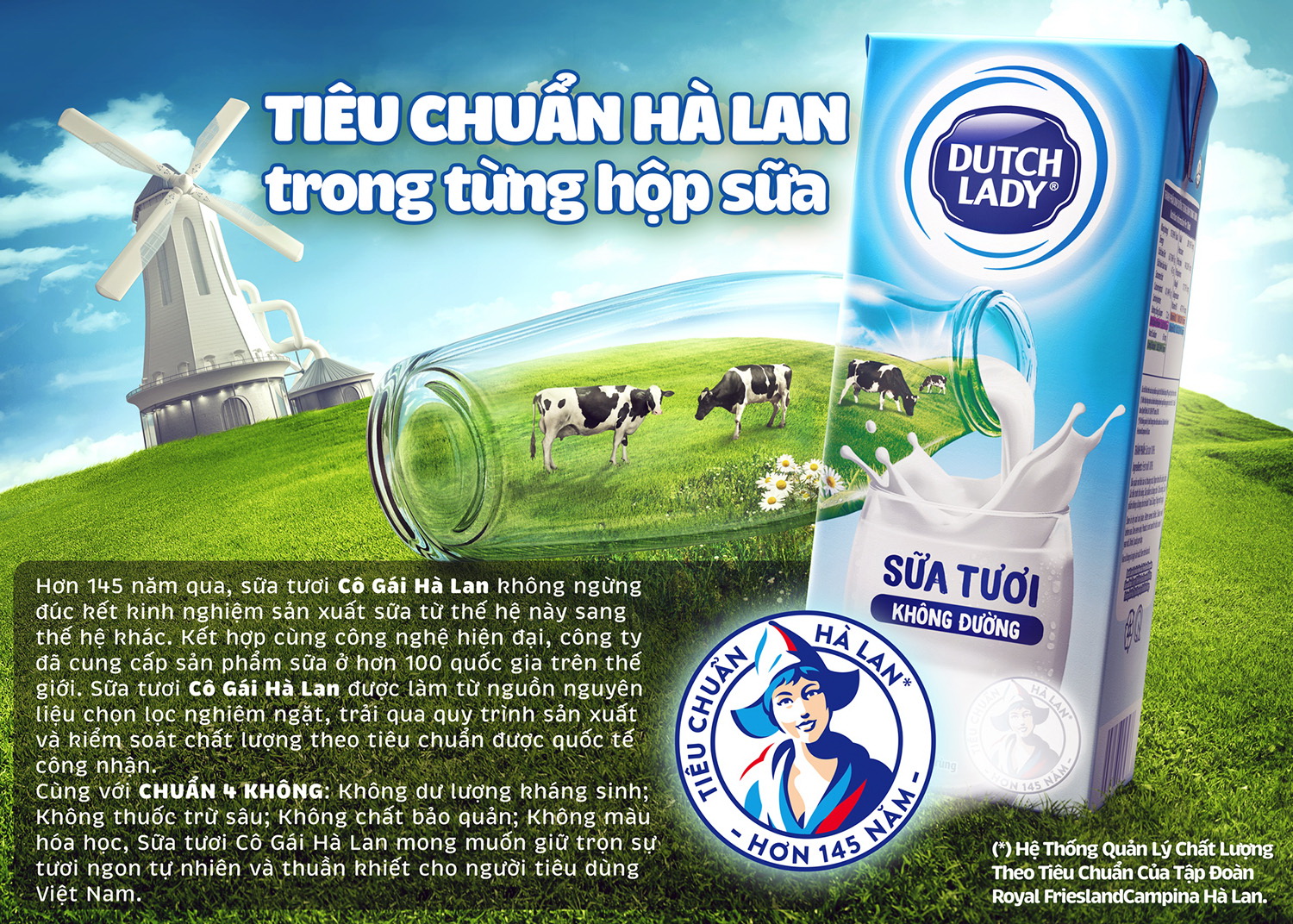 Dựa trên nền tảng cộng đồng, di sản kế thừa lâu đời và quy trình kiểm soát chất lượng nghiêm ngặt, Sữa tươi cô gái Hà Lan với tiêu chuẩn sữa đồng nhất và dinh dưỡng cân bằng, đã tạo nên niềm tin nơi người tiêu dùng. Sản phẩm sữa với huy hiệu Hoàng gia cao quý do Nữ hoàng trao tặng chính là chọn lựa mà các mẹ Việt Nam và các mẹ tại hơn 100 quốc gia trên thế giới gửi trọn niềm tin.