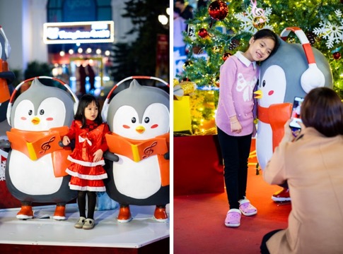 Đặc biệt, nhân vật chim cánh cụt đến từ thị trấn tuyết Vincom Mega Mall Royal City trở thành “cơn sốt” khiến các bạn nhỏ cùng ba mẹ rủ nhau “truy tìm”