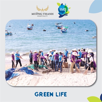“For Green World – Cho một Trái Đất xanh” là thông điệp Tập đoàn Mường Thanh lựa chọn cho chiến dịch hành động vì môi trường sẽ được phát động triển khai trong tháng 7 và tháng 8.2022. Điểm nổi bật của chương trình năm nay đó là chuỗi các hoạt động: Green Day - Green Energy: Đạp xe diễu hành xung quanh khách sạn và các hoạt động tiết kiệm năng lượng trong khách sạn...; Green Life: Dọn rác tại bãi biển, xung quanh khu vực khách sạn... và Green Dream: trồng cây tại khuôn viên khách sạn...