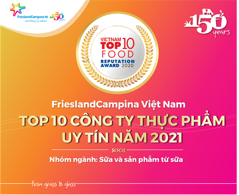 Trong khi đó, dựa vào các kết quả nghiên cứu độc lập của Vietnam Report dành cho các doanh nghiệp ngành thực phẩm - đồ uống, Tập đoàn sữa đa quốc gia hàng đầu thế giới FrieslandCampina đã lọt vào “Top 10 Công ty Uy tín Ngành Thực phẩm - Đồ uống năm 2021”. Giải thưởng của Công ty CP Báo cáo đánh giá Việt Nam (Vietnam Report) dựa trên ba tiêu chí chính gồm: Năng lực tài chính, Uy tín truyền thông, Khảo sát ý kiến các đối tượng liên quan (người tiêu dùng, khách hàng…).