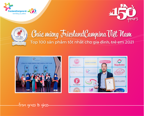 Bên cạnh đó, FrieslandCampina Việt Nam còn ghi tên mình vào danh sách “Top 100 - Sản phẩm, Dịch vụ tốt nhất cho Gia đình, Trẻ em” do Báo Lao động và Xã hội tổ chức. Giải thưởng vinh danh các đơn vị, doanh nghiệp có chiến lược ứng biến xuất sắc, vượt qua khó khăn do đại dịch Covid-19 để tạo ra sản phẩm, dịch vụ tốt nhất cho gia đình, trẻ em. Bà Nguyễn Thu Hằng, Phó Tổng Biên tập Báo Lao động và Xã hội - Trưởng Ban tổ chức cho biết, chính người tiêu dùng đã tin tưởng bỏ phiếu bầu chọn và qua sự cân nhắc, thẩm định kỹ lưỡng của Hội đồng thẩm định lựa chọn ra những sản phẩm, dịch vụ xứng đáng để vinh danh. Điều đó cho thấy doanh nghiệp, đơn vị đạt giải không chỉ khẳng định thương hiệu sản phẩm, dịch vụ của mình mà còn tạo sự tin tưởng của người tiêu dùng cả nước với các thương hiệu phục vụ nhu cầu cho gia đình.