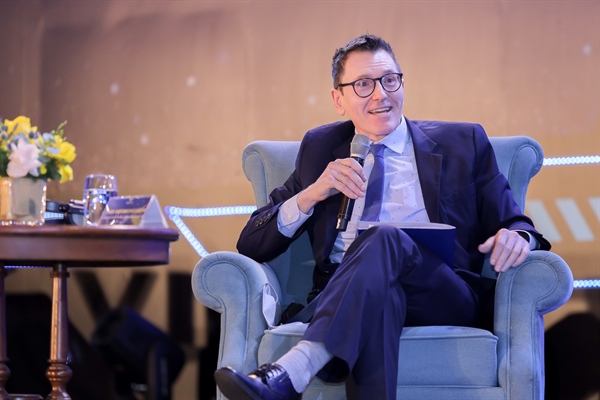 GS Sir Richard Henry Friend nói về năng lượng tái tạo tại Toạ đàm khoa học vì cuộc sống, nằm trong khuôn khổ chuỗi sự kiện VinFuture sáng 19/1