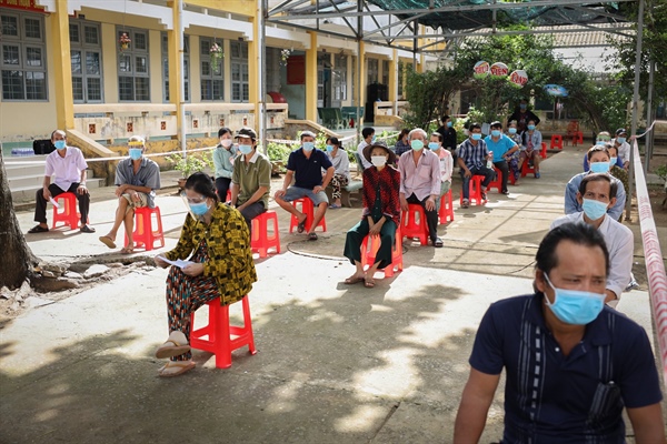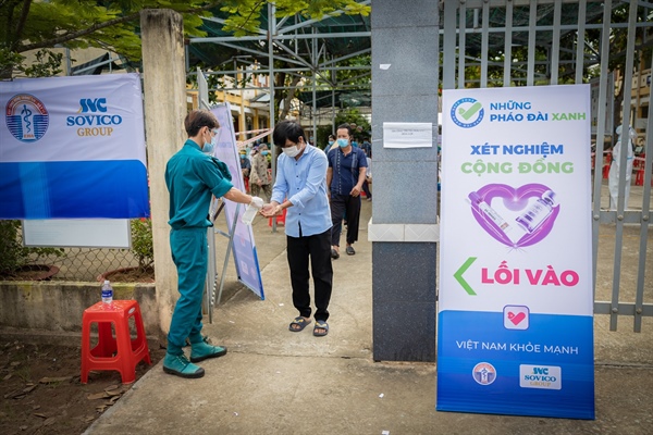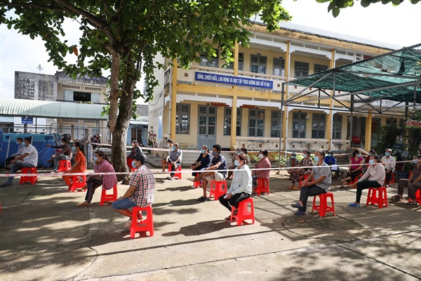 Hình ảnh người dân đang được xét nghiệm COVID-19 ngay ngắn, trật tự