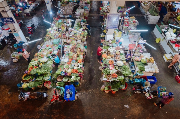 Hình ảnh chợ hoạt động trở lại, người dân đi mua sắm