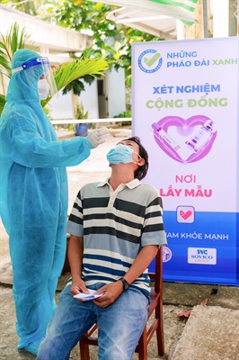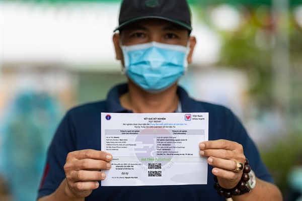 Hình ảnh người dân hoàn thành xét nghiệm và nhận được kết quả xét nghiệm có QR code