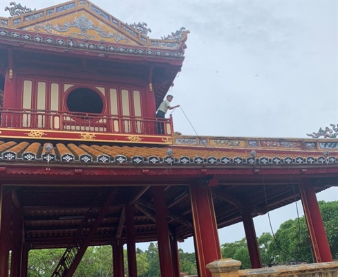 Ông Trương Công Sơn, Chánh Văn phòng Trung tâm Bảo tồn Di tích Cố đô Huế, cho biết: Đối với các công trình đang trong quá trình trùng tu, Trung tâm đã nhắc nhở, yêu cầu các đơn vị thi công gia cố hệ thống bao che các công trình do đơn vị mình quản lý, nhằm hạn chế thiệt hại thấp nhất khi bão, lũ xảy ra.