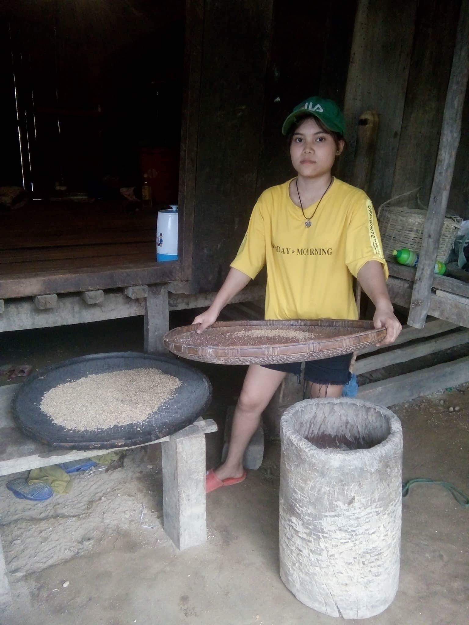 Nữ sinh Lê Thị Nhàng đang phụ gia đình tại thôn 5, Trà My