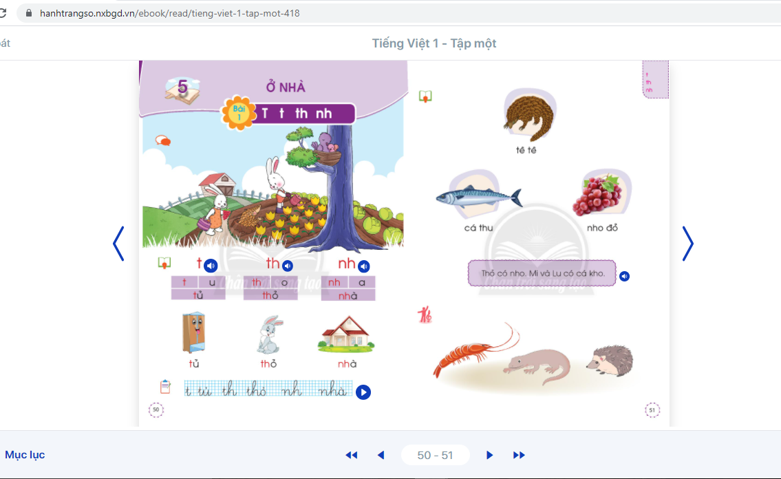 Sách giáo khoa môn Tiếng Việt lớp 1 theo Chương trình giáo dục phổ thông mới trên nền tảng số