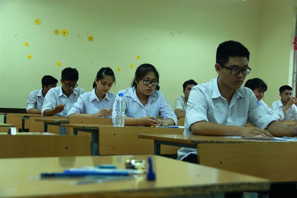 Thí sinh tại điểm thi Trường THPT Yên Viên (huyện Gia Lâm, Hà Nội), kỳ thi THPT quốc gia 2018. Ảnh Hùng Thanh