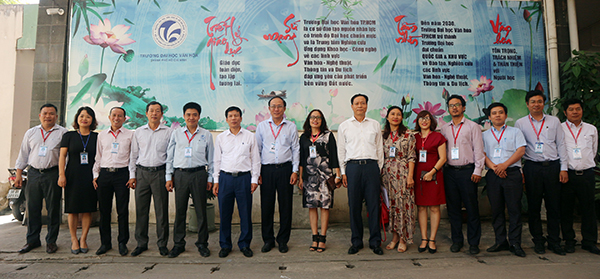 Báo cáo với Bộ trưởng Nguyễn Ngọc Thiện, PGS.TS Nguyễn Thế Dũng, Hiệu trưởng Trường ĐH Văn hóa TP.HCM cho biết, trong năm học qua, ngoài những công việc thường xuyên, trường đã thực hiện được nhiều công việc lớn. Trường đã điều chỉnh các chương trình đào tạo theo định hướng ứng dụng, gắn đào tạo với phục vụ cộng đồng nhằm tạo môi trường rèn luyện cho sinh viên. Đặc biệt, Trường triển khai thực hiện ISO 9001:2015 và kiểm định chất lượng cơ sở giáo dục theo bộ tiêu chuẩn mới do Bộ GD&ĐT quy định; ứng dụng phần mềm mới để quản trị toàn bộ hoạt động Nhà trường. Được sự quan tâm của lãnh đạo Bộ VHTTDL, Trường đã đầu tư thêm cơ sở vật chất phục vụ đào tạo theo định hướng ứng dụng. Hiện Trường có 2 ký túc xá 2.500 chỗ. Hai cơ sở đào tạo hiện có: Hệ thống phòng học đáp ứng quy mô và hình thức đào tạo, hội trường biễu diễn nghệ thuật, khu nhà học thực hành Văn hóa nghệ thuật, các phòng thực hành Bảo tàng, Thư viện, Truyền thông, Du lịch, phòng thực hành máy tính, phòng hội thảo, phòng học đa phương tiện.