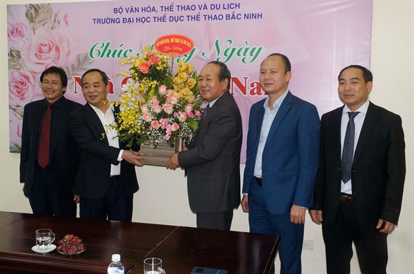 | Thứ trưởng Lê Quang Tùng chúc mừng thầy cô Trường Đại học Mỹ thuật Việt Nam Ảnh: TRẦN HUẤN Cùng ngày, Thứ trưởng Lê Quang Tùng đã đến chúc mừng các thầy, cô và cán bộ công nhân viên chức Trường Đại học Văn hoá Hà Nội và Trường Cao đẳng Du lịch Hà Nội nhân Ngày Nhà giáo Việt Nam. Thay mặt Bộ VHTTDL, Thứ trưởng Lê Quang Tùng đã gửi lời chúc mừng tốt đẹp nhất tới Ban giám hiệu và toàn thể cán bộ, thầy cô giáo của hai trường. Thứ trưởng đề nghị các trường cần tiếp tục quan tâm đến công tác nghiên cứu sâu các lĩnh vực thuộc Bộ và đẩy mạnh giao lưu, hợp tác quốc tế. Các trường cũng cần đặc biệt quan tâm đến đào tạo các ngành liên quan đến di sản văn hoá, gia đình học, quản lý văn hoá, văn học nghệ thuật, văn hoá các dân tộc thiểu số, và là cơ sở đào tạo nghề hàng đầu về du lịch của cả nước, cung cấp nguồn nhân lực cho ngành, đáp ứng được mức tăng trưởng trung bình 20-25%/ năm và nhu cầu phát triển vô cùng mạnh mẽ của ngành Du lịch thời gian tới. Trước đó, Thứ trưởng Lê Quang Tùng đã đến chúc mừng và tặng hoa các thầy cô Trường Đại học Mỹ thuật Việt Nam. THUÝ HÀ |
