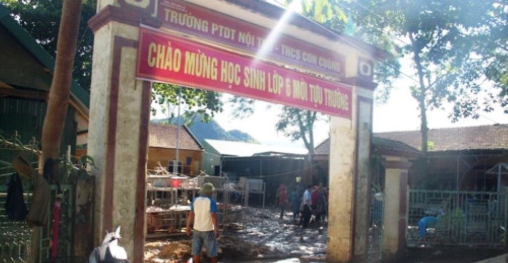 Tại huyện Con Cuông, ông Lê Thanh An, Trưởng phòng GD&ĐT huyện cho biết, Trường phổ thông dân tộc nội trú - THCS Con Cuông (đóng tại địa bàn xã Bồng Khê) là trường nội trú dành cho học sinh là con em đồng bào dân tộc thiểu số vùng sâu, vùng xa trên địa bàn huyện Con Cuông. Năm học 2018-2019, nhà trường có 300 học sinh, trong đó có 75 em khối 6 vào nhập học. Do ảnh hưởng nước lũ thượng nguồn sông Lam dâng lên khiến ngôi trường này bị ngập sâu trên 2m. Sau khi lũ rút đi, một khối lượng bùn đất khổng lồ bao phủ lên khuôn viên trường.