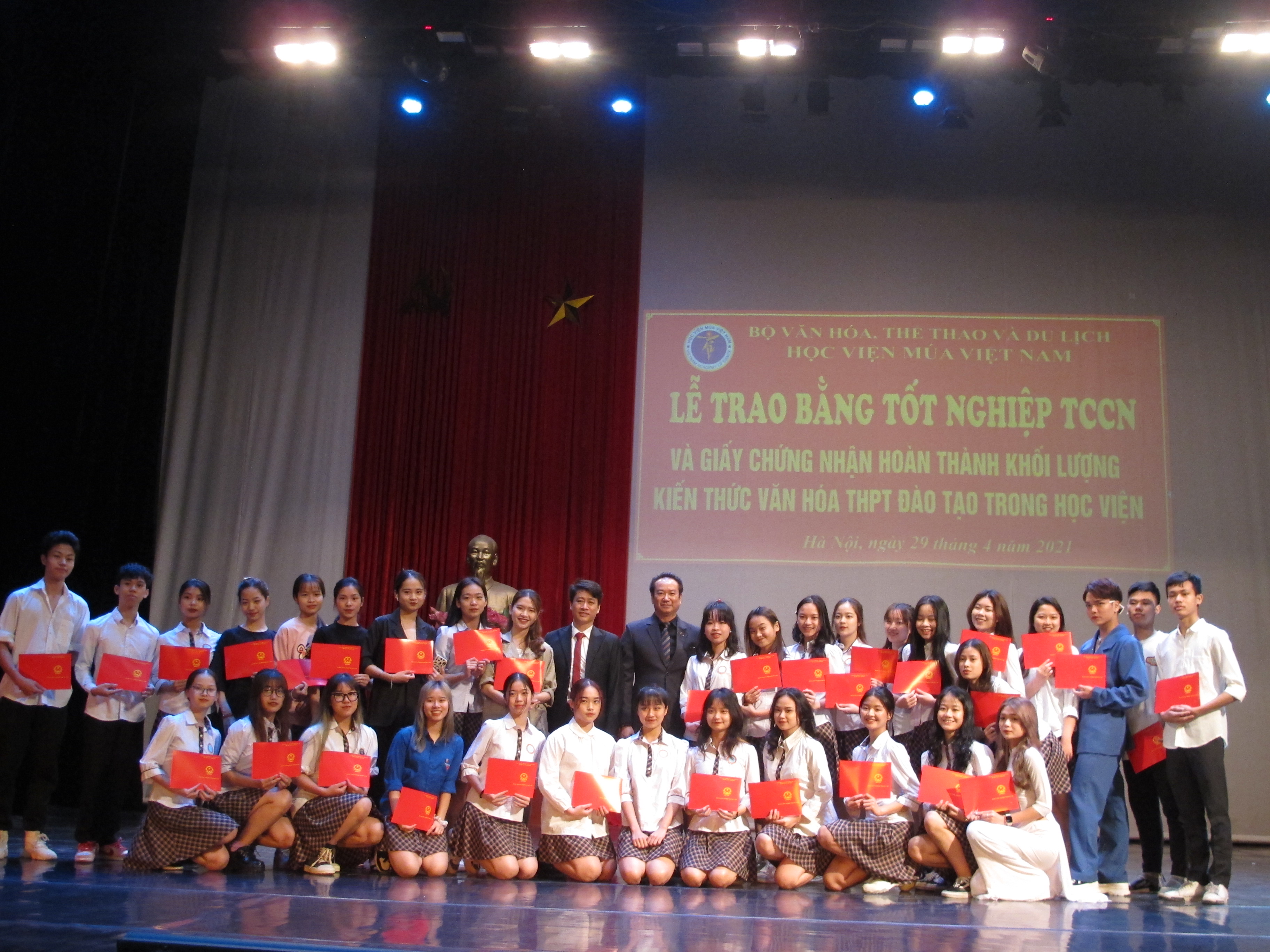 Lễ cấp Bằng Tốt nghiệp Trung cấp chuyên nghiệp và Giấy chứng nhận hoàn thành khối lượng kiến thức văn hóa THPT cho học viên các khóa học trình độ Trung cấp, Cao đẳng giai đoạn năm 2012 - 2016 của Học viện Múa Việt Nam
