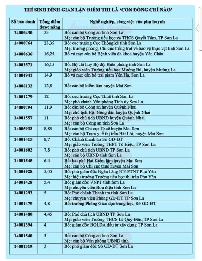 Danh sách chức vụ của phụ huynh có thí sinh được nâng điểm đang dần được hé lộ