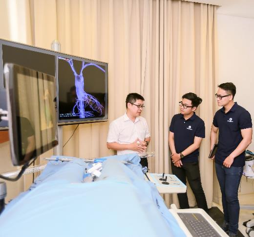 Hoàng Trung Thiên (đứng giữa) tại Trung tâm Mô phỏng Bệnh viện Vinmec - Hoàn thành chương trình Thạc sĩ tại Đại học Công nghệ Tokyo, Thiên sẽ theo học Tiến sĩ Y sinh tại Đại học New South Wales, nằm trong top 50 ĐH hàng đầu thế giới với suất học bổng toàn phần từ Vingroup.