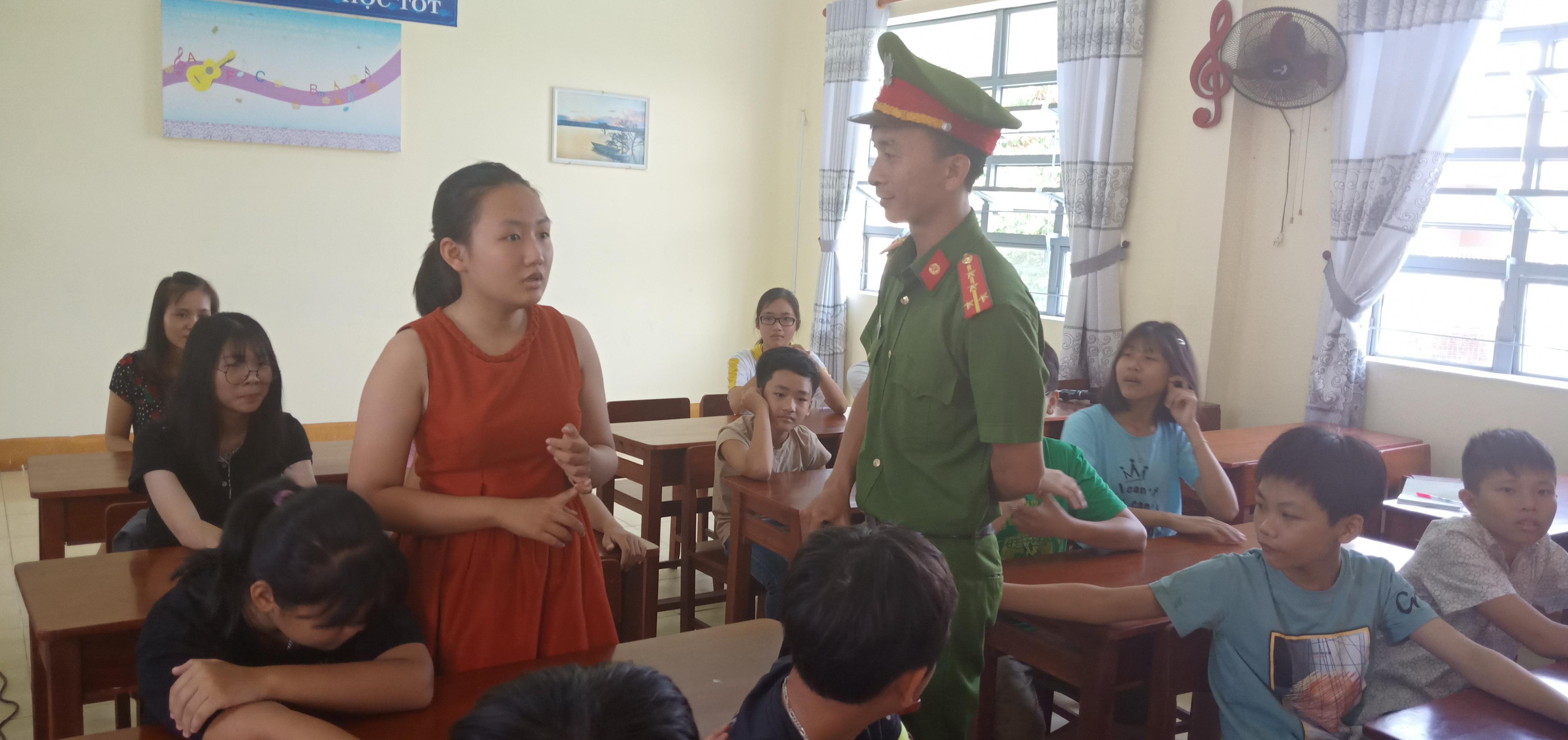 Cán bộ công an tham gia lớp học để truyền đạt các kiến thức pháp luật liên quan