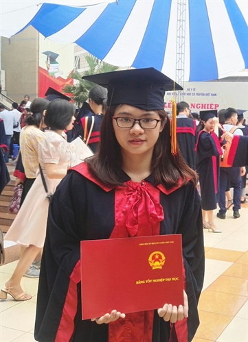 Tân thủ khoa Phạm Thị Cẩm Hà trong ngày tốt nghiệp