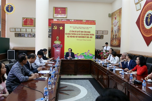 Thay mặt Ban giám đốc, Hội đồng Trường của Học viện Múa Việt Nam, TS.NSƯT Trần Văn Hải, quyền Giám đốc Học viện Múa Việt Nam cho biết, Học viện Múa Việt Nam rất vinh dự khi là một trong những đơn vị được Bộ VHTTDL ra quyết định thành lập Hội đồng trường. Hội đồng trường được thành lập có ý nghĩa rất lớn đối với sự phát triển của Học viện, đặc biệt là việc đăng ký hoạt động đào tạo, tuyển sinh trình độ đại học. Lĩnh hội những nhiệm vụ mà lãnh đạo Bộ VHTTDL giao phó, Đảng ủy Học viện, Ban Giám đốc, Hội đồng trường của Học viện Múa Việt Nam xin hứa hoàn thành tốt các nhiệm vụ trước mắt và lâu dài.