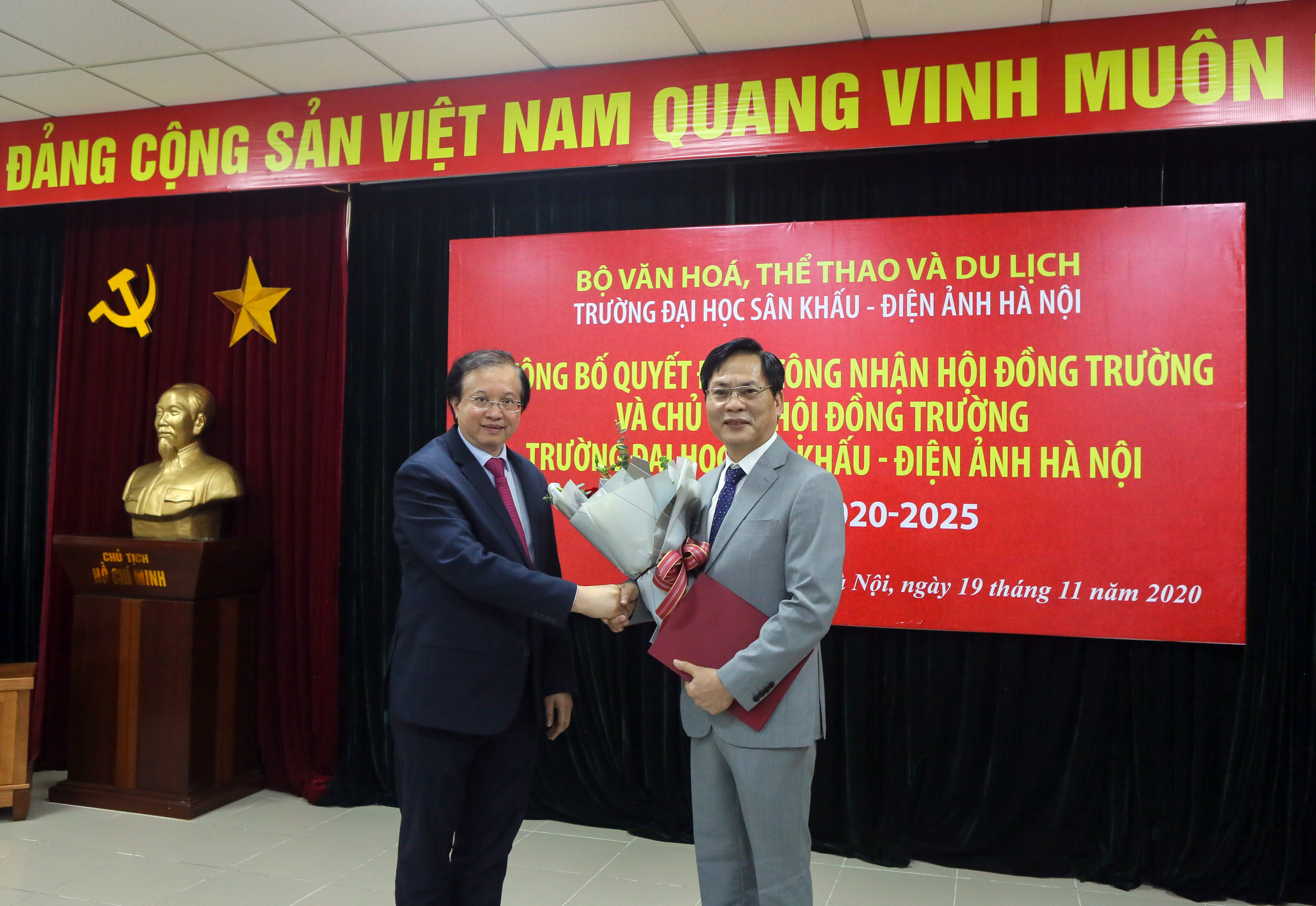 Tại Lễ công bố của Trường ĐH Sân khấu Điện ảnh Hà Nội và Học Viện Múa Việt Nam, PGS.TS Tạ Quang Đông đã thay mặt lãnh đạo Bộ VHTTDL trao quyết định thành lập Hội đồng Trường, Quyết định công nhận Chủ tịch Hội đồng. Thứ trưởng ghi nhận quá trình triển khai thành lập Hội đồng trường nhiệm kỳ 2020 – 2025 đã theo đúng quy định của “Luật sửa đổi, bổ sung một số điều của Luật Giáo dục đại học”.