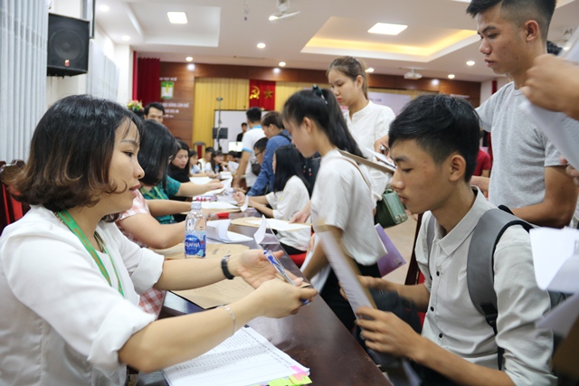 Thí sinh làm thủ tục nhập học vào các đơn vị thuộc Đại học Huế.