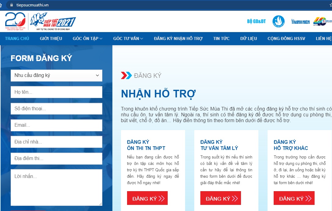 Năm 2021, với mục tiêu đẩy mạnh công tác hỗ trợ trực tuyến, Trung ương Hội Sinh viên Việt Nam phối hợp với nhà tài trợ cung cấp miễn phí 1 triệu khoá luyện thi, 3.000 quyển sách và 50 triệu học bổng cho các bạn thí sinh trên cả nước; hỗ trợ thêm 2.000 bộ sản phẩm mùa thi với thông điệp ”Tự tin thi tốt”  và cùng với Ban tổ chức trao gần 200 phần học bổng ”Tiếp sức mùa thi” để hỗ trợ cho các thí sinh nghèo có hoàn cảnh khó khăn.
