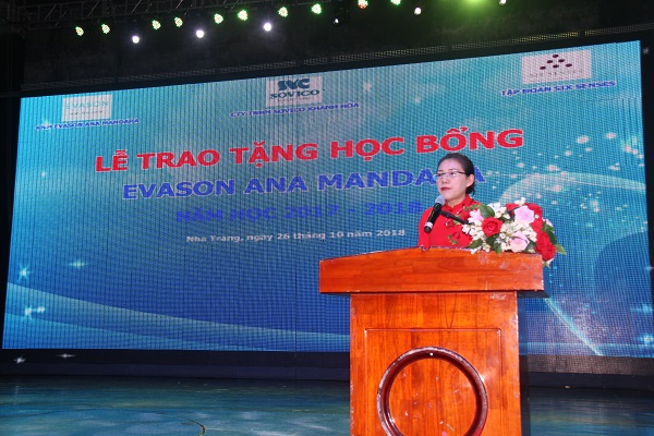 Phát biểu tại buổi trao học bổng, bà Nguyễn Thị Thu Nguyệt, Tổng GĐ Công ty SOVICO, Chủ tịch Ban điều hành Quỹ học bổng Ana Mandara cho biết: “Qua 10 năm hoạt động, Ban điều hành Quỹ học bổng Ana Mandara luôn mong muốn phát triển Quỹ học bổng Ana Mandara hơn nữa trong tương lai, thu hút nhiều sự quan tâm và đóng góp từ các nhà hảo tâm và các đơn vị trong và ngoài nước để góp phần cho sự nghiệp giáo dục thế hệ trẻ của Tỉnh Khánh Hòa nói riêng và của cả nước nói chung”.
