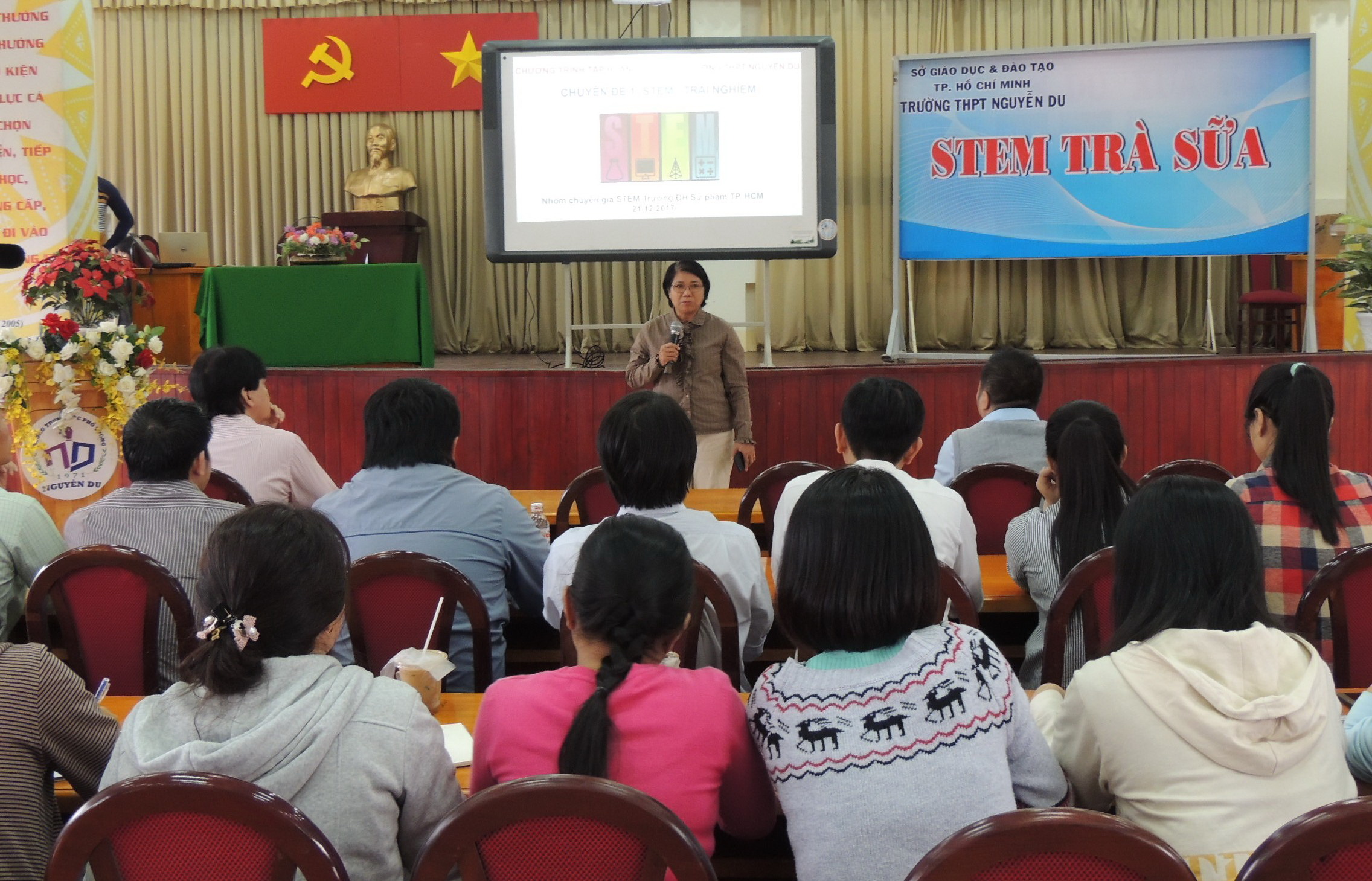 Để đưa giáo dục STEM vào dạy học, Trường THPT Nguyễn Du đã mời các chuyên gia Trường ĐH Sư phạm TP.HCM tập huấn cho các giáo viên từ ngày 21-24.12.2017