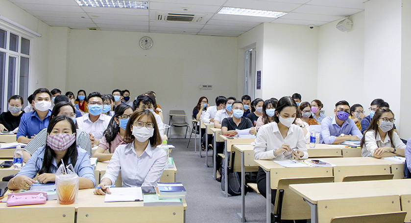 Học viên cao học và sinh viên hệ vừa học vừa làm Trường ĐH Luật TP.HCM đi học trở lại ngày 2.3 sau khi kê khai thông tin y tế