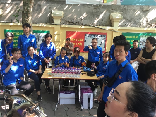 Sinh viên tình nguyện hướng dẫn tại các điểm thi