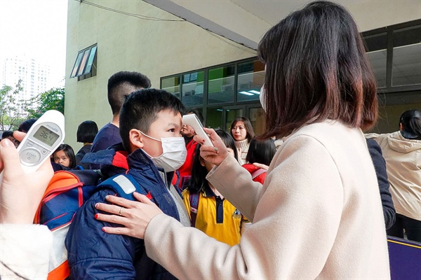 Kiểm tra thân nhiệt học sinh trước giờ vào lớp