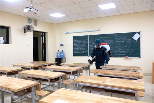 Trước đó, trong 2 ngày 1-2.2, hàng loạt trường học trên địa bàn Hà Nội đã được tiến hành khử trùng. Theo đó, các trường được vệ sinh, khử khuẩn sân chơi, lớp học, cầu thang, hành lang, nhà ăn, nhà đa năng, công trình vệ sinh, đồ chơi của trẻ, đồ dùng cá nhân… Ngoài việc phun thuốc khử trùng toàn bộ khu vực, bàn ghế, nắm cửa, tay vịn cầu thang được lau bằng dung dịch sát khuẩn, tại nhiều trường, phụ huynh đã tự nguyện tham gia quét dọn, vệ sinh và khử trùng cùng nhân viên y tế.